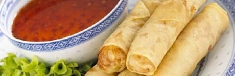 Bak je loempia's in de hete olie tot ze goudbruin zijn. Bak ze niet op te hoog vuur, anders heb je zwarte loempia en is de vulling nog niet warm.